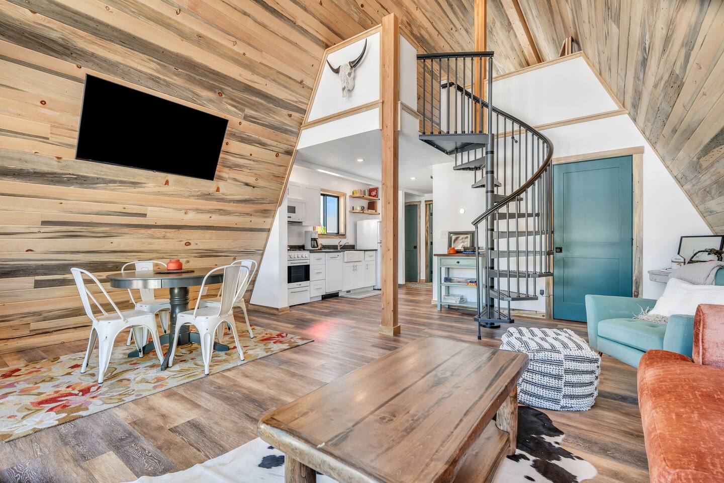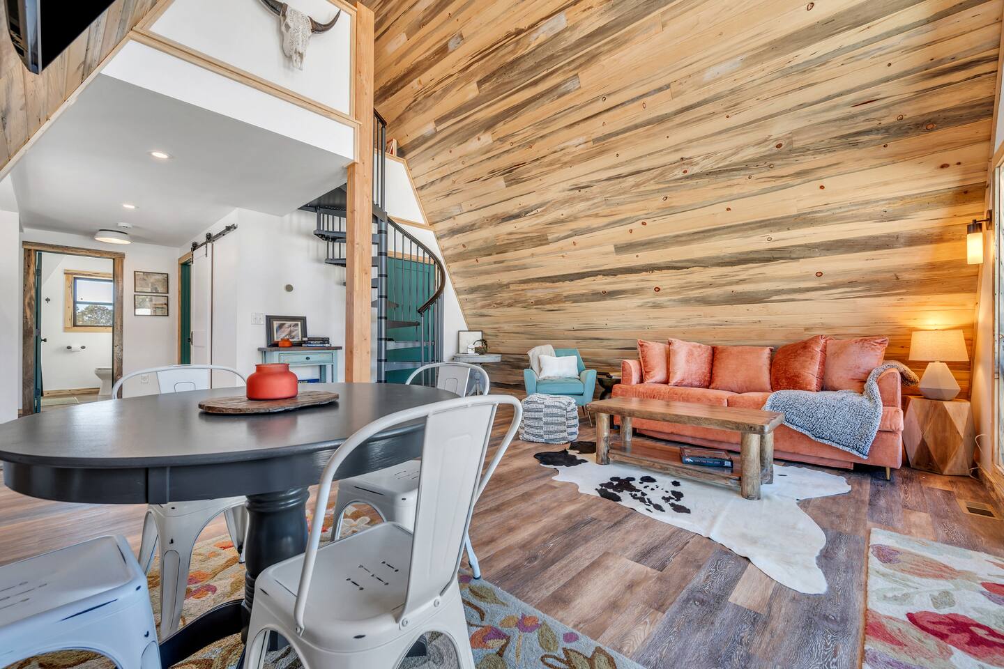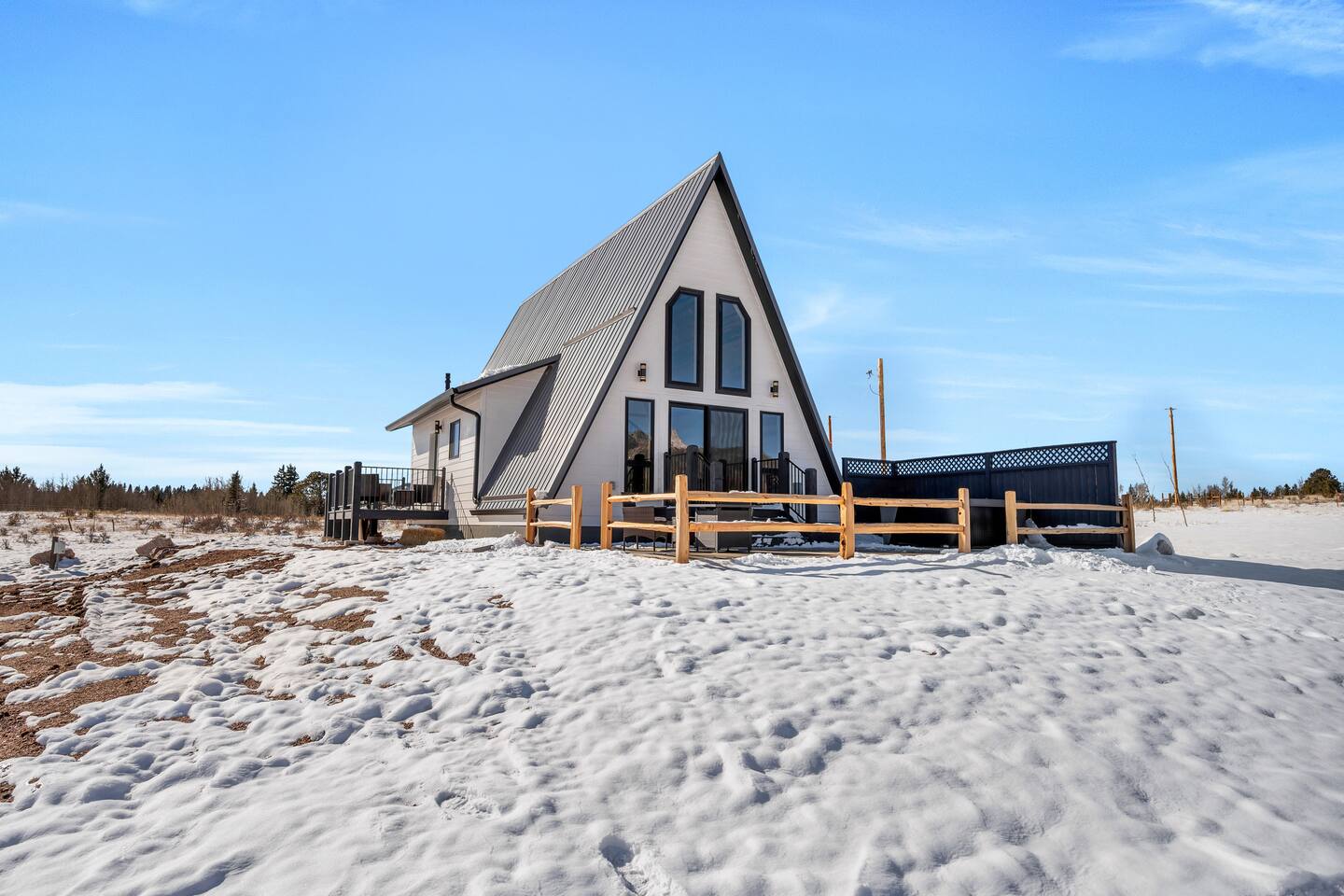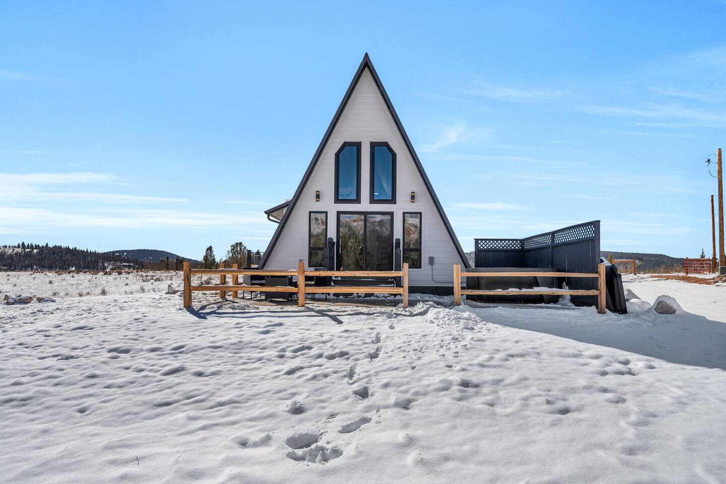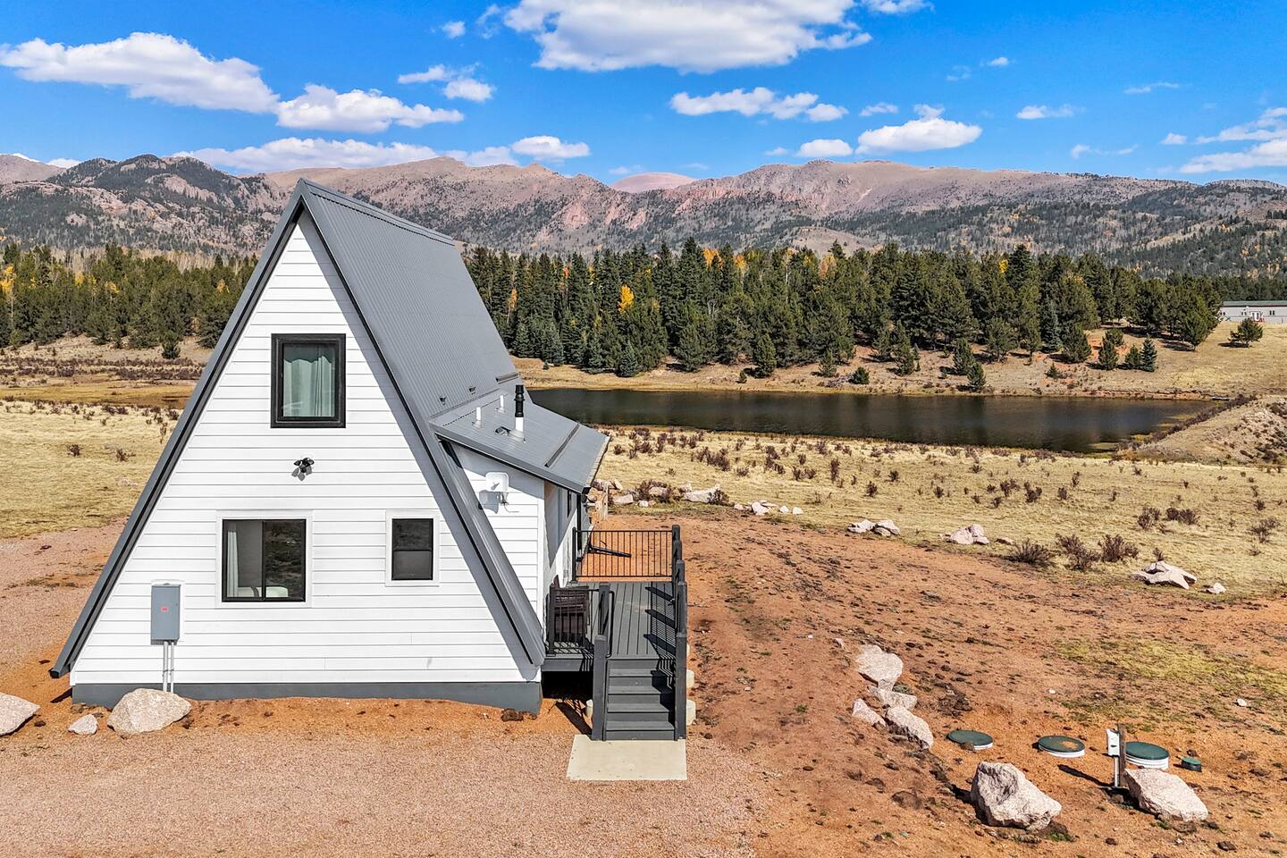 Soak in the hot tub under the stars with iconic Pikes Peak views from this stylish A-frame surrounded by BLM land. No cleaning fee — what you see is what you pay. 2BR/1BA with full kitchen, vaulted ceilings, outdoor firepit, and free parking. Sleeps 6 with cozy mountain charm throughout. 10 min to Cripple Creek casinos and the Victor Troll. 30 min to Woodland Park. Hiking, gold mine tours, and endless adventure await. 4WD recommended in winter.