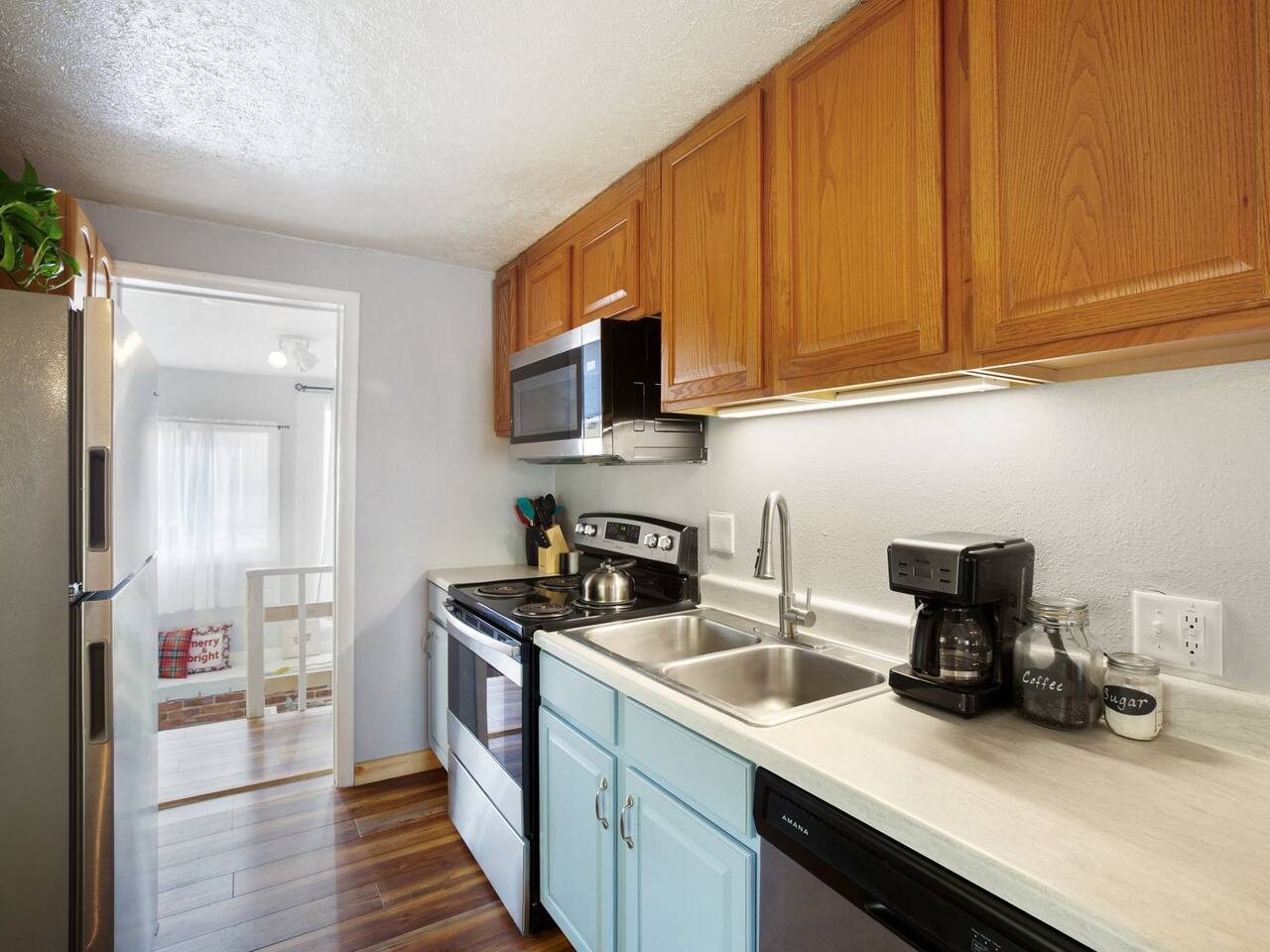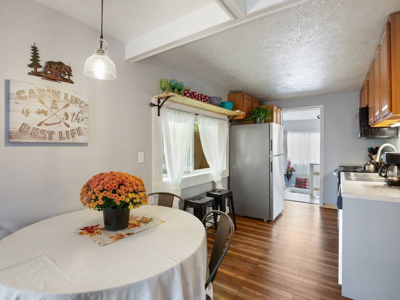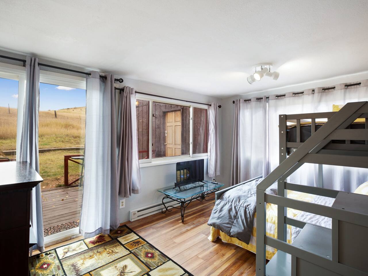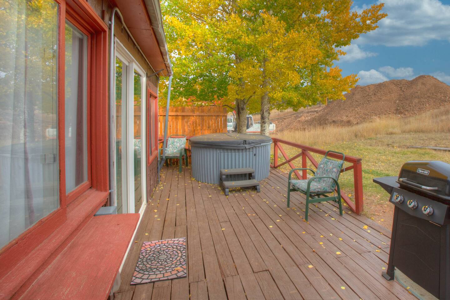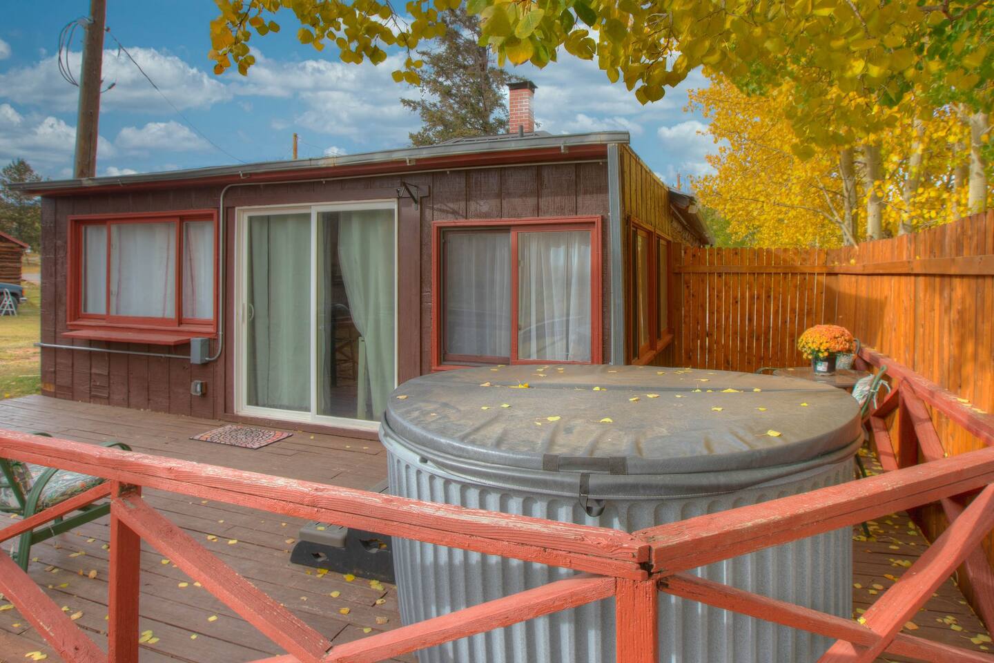 Recently remodeled, the cabin has one queen bedroom, with an additional enclosed sunroom with views of the back patio that has an additional full and twin bed. Cozy up with a fleece blanket in the living area next to the electric fireplace and enjoy watching your favorite show on the smart TV. The kitchen is well-stocked with a full refrigerator, oven, microwave, and dishwasher. Enjoy a cup of coffee and step out onto the back patio to enjoy the aspens, or enjoy soaking in the hot tub after a busy day at the slots. The basement has a second bathroom and a washer and dryer for your convenience, and provides extra storage for luggage or a dog kennel. Wifi is provided. Only a short walk or drive to Bennett Avenue, the cabin is the perfect getaway for anyone looking for peace and quiet of the mountains with easy access to historic attractions, shopping, and casinos. Book a tour of the Molly Kathleen Mine, ride the Cripple Creek & Victor Narrow Gauge Railroad, explore the abandoned mines along the Vindicator Valley walking trail in Victor, or seek your own "gold" at the local casinos. Autumn boasts some of the most beautiful fall foliage in the Pikes Peak region, but for outdoor enthusiasts, the surrounding area offers ample opportunities for hiking, scenic drives, fishing, and wildlife viewing in every season!